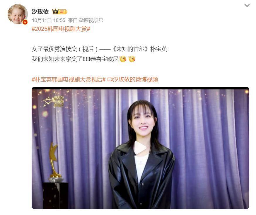 10月11日,第16届韩国电视剧大赏的视后桂冠,毫无悬念地落到了朴宝英头上——凭借在《未知的首尔》中一人分饰双胞胎的封神演技,她一举击败林智妍、IU、韩志旼等强劲对手,首次斩获该奖项“最优秀演技奖”。消息一出,网友纷纷感叹:“小身板里藏了核能级演技!”